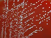 Brucella melitensis is a Gram-negative coccobacillus bacterium from the Brucellaceae family. The bacterium causes ovine brucellosis, along with Brucella ovis. It affects primarily sheep and goats, but cases have also been observed in cattle, yaks, water buffalo, Bactrian and dromedary camels, alpacas, dogs, horses and pigs.[1] Humans can become infected if they have contact with an infected animal or its byproducts. Animals acquire B. melitensis by venereal transmission and contact with the placenta, fetus, fetal fluids, and vaginal discharges from infected animals.[2] The organism is found in blood, urine, milk, and semen.[2] It is zoonotic, unlike B. ovis, causing Malta fever or localized brucellosis in humans.