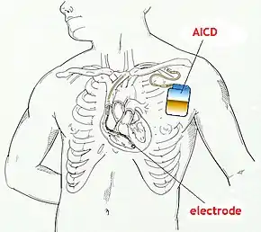 In people felt to be at higher risk of sudden cardiac death, an implantable cardioverter-defibrillator (ICD) may be recommended.[8] These small devices implanted under the skin continuously monitor the heart rhythm. If the device detects a potentially life-threatening arrhythmia it can give the heart a small electric shock, stunning the heart back into a normal rhythm.[40] An ICD can also function as a pacemaker, preventing abnormally slow heart rates that can also occur in people with Brugada syndrome.