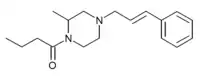 Bucinnazine (AP-237, 1-butyryl-4-cinnamylpiperazine) is an opioid analgesic drug that was widely used in China to treat pain in cancer patients as of 1986.[2] It is one of the most potent compounds among a series of piperazine-amides first synthesized and reported in Japan in the 1970s.[3][4][5] Bucinnazine has analgesic potency comparable to that of morphine but with a relatively higher therapeutic index.