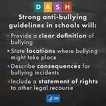 A Centers for Disease Control and Prevention graphic presenting school anti-bullying guidelines