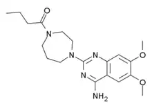 Bunazosin (INN) is an α1-adrenergic receptor antagonist.[1] Bunazosin was initially developed to treat benign prostatic hyperplasia (BPH). It has been approved in Japan in a topical form to treat glaucoma. The mechanism of action is a reduction of aqueous outflow through the uveoscleral pathway resulting in lowering the intraocular pressure. It also may act to improve blood flow to the ocular nerve. Systemic Alpha-1 adrenergic receptor antagonists have been implicated in Intraoperative Floppy Iris Syndrome (IFIS). Bunazosin potentially could have the same effect but there has been no research to substantiate this as a risk for cataract surgery.