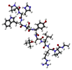 Buserelin, sold under the brand name Suprefact among others, is a medication which is used primarily in the treatment of prostate cancer and endometriosis.[3][1][2] It is also used for other indications such as the treatment of premenopausal breast cancer, uterine fibroids, and early puberty, in assisted reproduction for female infertility, and as a part of transgender hormone therapy.[6][3][7] In addition, buserelin is used in veterinary medicine.[8] The medication is typically used as a nasal spray three times per day, but is also available for use as a solution or implant for injection into fat.[1][2]