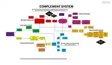 Both enzymes, C4b2b3b and C3bBbC3b, are unstable and undergo decay dissociation with a half-life at 37 °C of approximately 1.5 - 3 min.[1] The properdin stabilizes the alternative pathway C5 convertase of which half-life is at 37 °C 10 - 34 min.[2][3] In contrast, the fluid phase C5 convertase CVFBb is stable (half-life at 37 °C = 7 h).[10] The oxidation of C2 protein stabilizes the C4b2boxy complex.[11] The Factor H–related protein 1 (FHR1) has been identified as a novel inhibitor of the complement pathway. FHR1 blocks C5 convertase activity and interferes with C5b surface deposition and membrane attack complex (MAC) formation. Apparently Factor H and FHR1 control complement activation in a sequential manner. In hemolytic uremic syndrome (HUS), the absence of FHR1 may result in reduced inhibition of terminal complex formation and in reduced protection of endothelial cells upon complement attack.[12]