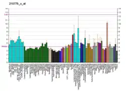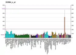 Caspase-9 in humans is expressed in fetus and adult tissues.[14][12] Tissue expression of caspase-9 is ubiquitous with the highest expression in the brain and heart, specifically at the developmental stage of an adult in the heart's muscle cells.[18] The liver, pancreas, and skeletal muscle express this enzyme at a moderate level, and all other tissues express caspase-9 at low levels.[18]