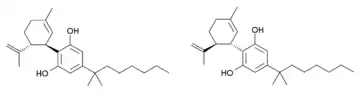 Another closely analogous compound has also been described, with the double bond in the cyclohexene ring shifted to between the 1,6-positions rather than the 2,3-positions (i.e. analogous to synthetic THC analogues such as parahexyl), the isopropenyl group saturated to isopropyl, and a 1,2-dimethylheptyl side chain. It is synthesized by Birch reduction from the 1,2-dimethylheptyl analogue of cannabidiol. This compound also produces potent cannabinoid-like effects in animals, but has three chiral centers and is composed of a mixture of eight stereoisomers, which have not been studied individually, so it is not known which stereoisomers are active.[7][8]