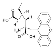 CECXG (3'-ethyl-LY-341,495) is a research drug which acts as a potent and selective antagonist for the group II metabotropic glutamate receptors (mGluR2/3), with reasonable selectivity for mGluR3. While it is some five times less potent than LY-341,495 at mGluR3, it has 38x higher affinity for mGluR3 over mGluR2,[1] making it one of the few ligands available that is able to distinguish between these two closely related receptor subtypes.[2][3][4]
