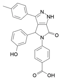 CID16020046 is a compound which acts as an inverse agonist at the former orphan receptor GPR55,[1] and may be the first selective inverse agonist characterised for this receptor. It was found to block a number of GPR55 mediated responses such as wound healing and activation of immune system T-cells and B-cells, as well as showing inverse agonist activity in the absence of GPR55 agonist stimulation. However while it was found to have good selectivity over the related CB1 and CB2 cannabinoid receptors as well as a number of other targets, CID16020046 has not yet been tested against another related receptor GPR18, so its selectivity for GPR55 over this target has not been established.[2] It has antiinflammatory actions,[3][4][5] has been used to study the interaction between GPR55 mediated and CB1 mediated activity,[6] and research using this compound has revealed a role for GPR55 in learning and memory.[7][8]