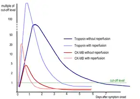 ![]() Kinetics of cardiac markers in myocardial infarction with or without reperfusion treatment | |