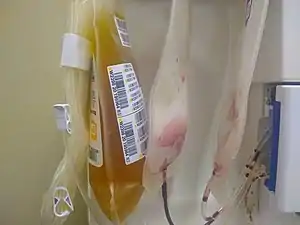 In the United States, the FDA has granted temporary authorization to convalescent plasma (plasma from the blood of people who have recovered from COVID-19, which thus contains antibodies against SARS-CoV-2) as an experimental treatment in cases where the person's life is seriously or immediately threatened.[66] As of May 2021, at least 12 randomized controlled trials on the effectiveness of convalescent plasma treatment were published in peer reviewed medical journals.[65] In addition, as of May 2021, 100 additional trials were 'ongoing' and 33 studies were reported as 'competed' but not yet published.[65]