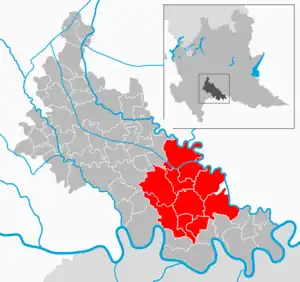 Map of Lodi Province showing ten of the eleven quarantined municipalities prior to the zone's expansion