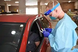 Arkansas Surgeon General, Gregory Bledsoe, on October 28 was the 11th state official to test positive for the coronavirus, along with his immediate family which includes state Senator Cecile Bledsoe.[71][72]