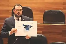 On 28 March, President Adrián Barbón suggested to the central government that the quarantine should be toughened. His call was answered, as all non-essential activities were thenceforth ceased until 9 April.[26] However, the Asturian government was negotiating with Madrid about the continuation of the region's heavy industry, hoping to avoid its bankruptcy.[27] In addition, several of the town councils of Asturias, such as Valdés or Cudillero, approved their own restrictions by forbidding tourism in the whole municipality with the aim of controlling the disease.[28]