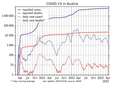 - "Austria: WHO Coronavirus Disease (COVID-19) Dashboard With Vaccination Data". covid19.who.int. Retrieved 27 February 2023.