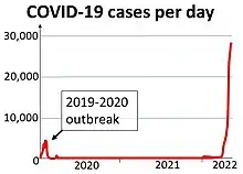 In 2022, infection rates increased, and on April 3, 2022, China reported 13,146 new cases of COVID-19 in the past 24 hours, which was the highest single-day total of new cases since the height of the 2020 outbreak.[17]