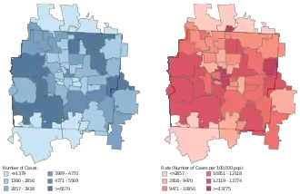 ![]() COVID-19 cases by zip code as of September 22, 2021 | |