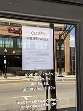 Following Governor Mike DeWine's reopening guidelines in early May, businesses began to reopen. Bars and restaurants could reopen their outdoor dining rooms on May 15. The reopening caused some crowds at the businesses.[46] Unlike many large cities in Ohio and elsewhere, Columbus has not shut down any streets for outdoor dining or otherwise, with the mayor deeming it irresponsibly increasing the likelihood of further coronavirus spread.[47] The Friday, May 15 reopenings caused nine bars and restaurants to violate social distancing requirements, causing each of the businesses to be issued warnings. Standard Hall, a bar in the Short North, was issued multiple citations, after Columbus Public Health received 10 complaints, gave a warning, and returned with Columbus police, to find more violations. The owner refused to sign the citation.[48] The owner commented that he was not given time to break up the crowds before the second citation. His business will remain closed to avoid it being given city-ordered shutdown.[49]