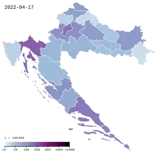 The COVID-19 pandemic in Croatia has resulted in 1,274,040[1] confirmed cases of COVID-19 and 18,276[1] deaths.