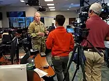 Kemp has faced criticism that his efforts to stop the virus' spread are not forceful enough.[62] In a primetime television "town hall" on March 26 simulcast on all of Atlanta's major network stations as well as by statewide PBS member Georgia Public Broadcasting and over 140 radio stations across the state — Kemp appeared with members of the state coronavirus task force, including Atlanta mayor Bottoms, DPH commissioner Kathleen Toomey, Georgia Emergency Management Agency director Homer Bryson, and Georgia Insurance and Safety Fire commissioner John King.[63]