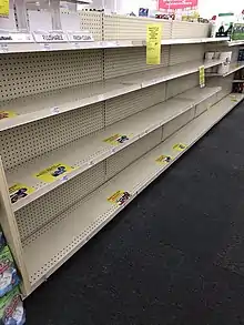 The city of Albany became a major hot spot within the state with one of the highest densities of COVID-19 infections in the world based on the size of its population.[3] With approximately 75,000 residents, there have been 973 confirmed cases and 56 deaths at Phoebe Putney Memorial Hospital[4] in Albany, with many more still awaiting test results, quarantined inside their homes as of April 8, 2020.[3][5] The hospital also received media attention after CEO Scott Steiner said they had exhausted their entire six-month stockpile of medical supplies intended for COVID-19 response in just six days due to the extent of the outbreak.[6] As the hospital rushed to meet supply demands for PPE, they experienced price gouging and received defective equipment from black market medical suppliers in Mexico,[3][6] which resulted in a plan for staff workers to manually sew respiratory masks.[7] In response, Albany and surrounding Dougherty County declared a shelter-in-place order[8] lasting two weeks on March 20.[4]
