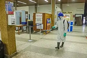 There were several disinfection exercises of markets in the Northern, North East and Savannah regions as well as the Eastern Region.[24] The Ministry of Local Government and Rural Development teamed up with Moderpest Company and Zoomlion Ghana for the exercise.[25]