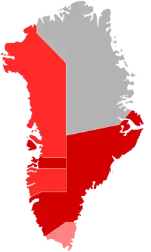 ![]() Map of the COVID-19 outbreak in Greenland (as of 11 August 2021).