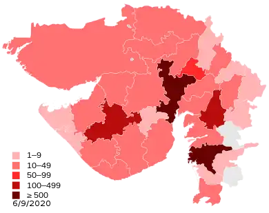 - "1,295 new coronavirus cases in Gujarat, 13 deaths, 1,445 recover". outlookindia.com. Retrieved 9 September 2020.