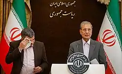 Farhad Tazari, the former head of the Islamic Revolution Guards Corps' Political Bureau,[128] Iran's first Vice-President Eshaq Jahangiri was infected with the virus.[129] Ali Asghar Mounesan, Minister of Cultural heritage, Handicrafts and Tourism, and Reza Rahmani, Minister of Industry, Mines and Business, got sick.[131] Member of Expediency Discernment Council Ali Akbar Velayati was infected with the virus.[132] Minoo Mohraz, a member of the committee to combat coronavirus, tested positive for the virus.[133]