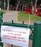 On 2 March, the 2020 Israeli legislative election was held. Multiple secluded voting booths were established for 5,630 quarantined Israeli citizens who were eligible to vote.[37] 4,073 citizens voted in the coronavirus-special voting booths. After the election, numerous Israelis were in quarantine.[38] On 10 March, Israel began limiting gatherings to 2,000 people.[39] A day later, on March 11, Israel further limited gatherings to 100 people.[5] On 14 March, Prime Minister Netanyahu announced new regulations and stated the need to "adopt a new way of life". The Health Ministry posted new regulations, effective 15 March. These included banning gatherings of more than 10 people, and closure of all educational institutions, among them daycare centers, special education, youth movements, and after-school programs. The list of venues required to close included: malls, restaurants, hotel dining rooms, pubs, dance clubs, gyms, pools, beaches, water and amusement parks, zoos and petting zoos, bathhouses and ritual baths for men, beauty and massage salons, event and conference venues, public boats and cable cars, and heritage sites. Take-away restaurants, supermarkets, and pharmacies were to remain open. The pandemic forced many events to be cancelled. Notwithstanding the closure of wedding halls, weddings took place in private homes with the limitation of no more than 10 participants in each room; dancing could take place both indoors and in outdoor courtyards. Weddings were also held on rooftops and yeshiva courtyards. In one case, a Sephardi couple opted to hold their wedding ceremony in an Osher Ad supermarket, which was exempt from the 10-person rule.[40] The Al-Aqsa Mosque and Dome of the Rock closed to prevent contamination of the holy sites.[41] As a result of the government's directive for citizens to remain at home, there was an increase in calls to domestic violence hotlines, and women's shelters were close to full capacity, both due to new arrivals and to current residents who remained due to the pandemic.[42]