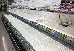 Supermarkets in Lombardy and Emilia-Romagna were emptied by customers as residents stockpiled food and supplies.[76][77][78] Streets, parks and train stations in multiple cities in Lombardy were left deserted.[79][80]