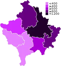 On 6 April, two new deaths from coronavirus are confirmed, one from Kosovo's capital, Pristina and one from village Koriša of Prizren.[58] On the same day, 20 other new cases of coronavirus were confirmed, 15 from village Banja of Mališevo, two from Mališevo, one from Bllacë of Suva Reka, one from Glogovac and one from Kosovo's capital, Pristina.[59]