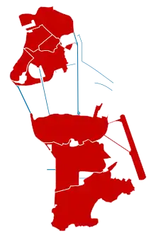 ![]() Map of parishes with confirmed (red) coronavirus cases (as of 29 March 2020) | |