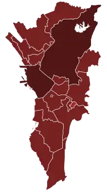 ![]() Confirmed cases in Metro Manila by city and municipality (as of October 29, 2021)[note 1]