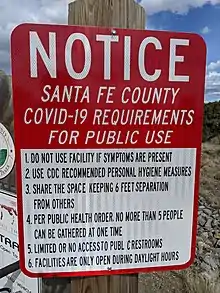 - "State re-enacts certain public health restrictions | NMDOH - Coronavirus Updates". New Mexico Department of Health. July 13, 2020. Archived from the original on July 14, 2020. Retrieved July 13, 2020.