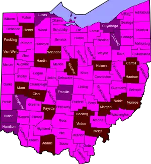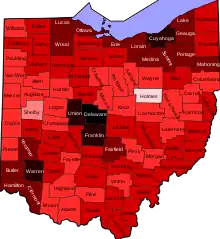 In late June and early July, some counties in Ohio experienced a sharp increase in cases.[26]