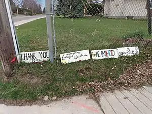 On April 16, the day before the province's new orders temporarily allowing police to conduct random stops to enforce the stay-at-home order, the Ottawa Police Service announced that they would not be using their new powers.[47] The new orders include restrictions to provincial border crossings (including the installation of checkpoints), prohibiting outdoor social gatherings, closure of all non-essential workplaces, the reduction of capacity limits in retail settings, and the closure of outdoor recreational amenities, including playgrounds.[48]