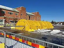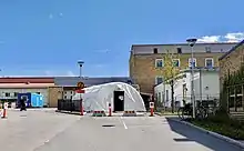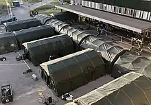 By the time of the Fall of the Berlin Wall, the Swedish Defence Forces was equipped with a total of 35 field hospitals, with what some considered to be the most modern battlefield medicine in the world, with the Swedish Navy having an additional 15 hospitals. The field hospitals had a combined capacity of treating 10.000 patients and performing 1000 surgeries every 24 hours, as well as stockpiles with drugs, medical supplies and personal protective equipment to treat 150.000 war casualties. Additionally, the Swedish state had several preparedness hospitals and Swedish schools were constructed to be converted into hospital units in case of a military conflict and with a total capacity of treating 125.000 patients, supported by a network of preparedness storages containing medicine and medical equipment. From 1990 and onwards, the system was gradually dismantled to eventually disappear altogether, with the equipment, including more than 600 new ventilators, being either given away or disposed of. At the start of the 2020 COVID-19 pandemic, the Swedish Defence Forces owned 2 medical units with a total of 96 beds, out of which 16 were ICU beds, and there were no civil preparedness storages for medical equipment left in Sweden.[38][39]