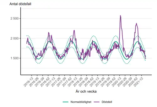 - "Rapport om överdödlighet till och med vecka 48, 2021" (PDF). Public Health Agency of Sweden (in Swedish). p. 3. Archived from the original (PDF) on 23 December 2021.