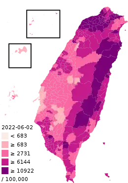 As of 19 March 2023, there are 10,231,343 confirmed cases in Taiwan, including 18,775 deaths.[33]