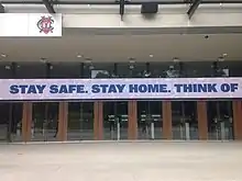 Residents were not to leave their homes except for essential shopping, exercise, caregiving, essential work, or participating in a professional sporting event. They were also limited to shop or exercise within five kilometres of their homes. During this time, face masks were mandatory at all times out-of-home, with all public gatherings banned, and all schools closed. As they accounted for the majority of UK variant cases, international arrivals into Victoria were also suspended.[42][43] All Australian states and territories placed travel restrictions upon Victoria.[47] Premier Andrews stated that these infections were "moving at a velocity that has not been seen anywhere in our country over the course of these last 12 months." Special dispensation was given to the 2021 Australian Open, which became crowdless effective 11:30 pm AEDT on 12 February in the midst of the night's final match (play was temporarily suspended at that time to remove all spectators from the court).[42][43][48]