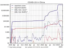 ![]() Rolling average of confirmed COVID-19 cases per day in mainland China | |
