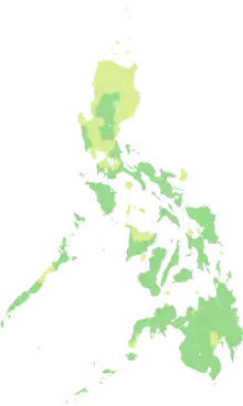 ![]() Map of provinces (including Metro Manila) with confirmed cases (as of October 29, 2021)[lower-alpha 1] ≥100000