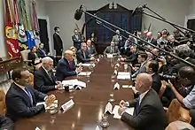 Throughout March and early April, several state, city, and county governments imposed "stay at home" quarantines on their populations to stem the spread of the virus.[76] By March 26, New York Times data showed the United States to have the highest number of known cases of any country.[77] By March 27, the country had reported over 100,000 cases.[78] On April 2, at President Trump's direction, the Centers for Medicare & Medicaid Services (CMS) and CDC ordered additional preventive guidelines to the long-term care facility industry.[79] On April 11, the U.S. death toll became the highest in the world when the number of deaths reached 20,000, surpassing that of Italy.[80] On April 19, the CMS added new regulations requiring nursing homes to inform residents, their families and representatives, of COVID-19 cases in their facilities.[81] On April 28, the total number of confirmed cases across the country surpassed 1 million.[82]