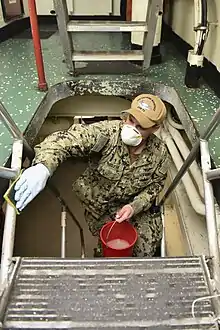 As of 20 April, 4,069 sailors had been moved off the ship,[35] out of the total crew of 4,800.[16] Some 94% of the crew had been tested for the virus, yielding 678 positive and 3,904 negative results.[35] As of 17 April, seven crew members were in the hospital including one in intensive care.[36] About 60% of the people who tested positive did not have symptoms.[37] As of 16 April, most of the ship had been cleaned.[38] Sailors kept testing positive for the virus even after 14 days of isolation; some who tested positive had previously tested negative.[35] The Navy temporarily suspended post-quarantine testing and extended the sailors' isolation, delaying plans to begin moves of the crew back to the carrier.[35] Some sailors volunteered for antibody testing.[39]