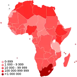 ![]() Map of the 2020 COVID-19 pandemic in Africa as of 24 December 2020