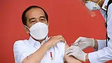 The COVID-19 vaccination in Indonesia is an ongoing mass immunization in response to the COVID-19 pandemic in Indonesia. On 13 January 2021, the program commenced when President Joko Widodo was vaccinated at the presidential palace.[1] In terms of total doses given, Indonesia ranks third in Asia and fifth in the world.[2]
