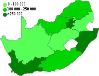 South Africa has ordered 60 million doses of vaccines, received 52.6 million doses in donations and expects a total of 9 million doses from Covax, with 320 million doses of the Janssen (Johnson & Johnson) and Pfizer–BioNTech vaccines to be manufactured locally for international and local distribution.[33][34] South Africa has accepted delivery of 11,059,420 doses of vaccines, with 1.5 million doses cleared after local manufacturing.