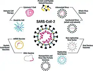 Platforms developed in 2020 involved nucleic acid technologies (nucleoside-modified messenger RNA and DNA), non-replicating viral vectors, peptides, recombinant proteins, live attenuated viruses, and inactivated viruses.[20][40][47][48]