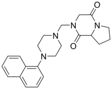 - López-Rodríguez ML, Morcillo MJ, Fernández E, et al. (April 2003). "Design and synthesis of S-(−)-2-[[4-(napht-1-yl)piperazin-1-yl]methyl]-1,4-dioxoperhydropyrrolo[1,2-a]pyrazine (CSP-2503) using computational simulation. A 5-HT1A receptor agonist". Bioorganic & Medicinal Chemistry Letters. 13 (8): 1429–32. doi:10.1016/S0960-894X(03)00160-4. PMID 12668005.