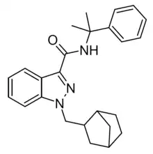 CUMYL-NBMINACA (SGT-152, Cumyl-BC[2.2.1]HpMINACA) is a synthetic cannabinoid compound first reported in a 2013 patent,[1] but not identified as a designer drug until 2021, being identified by a forensic laboratory in Germany in February 2021.[2][3]