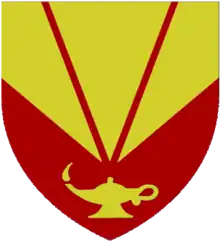 | Badge | A lamp Gules enflamed of three flames Argent. |